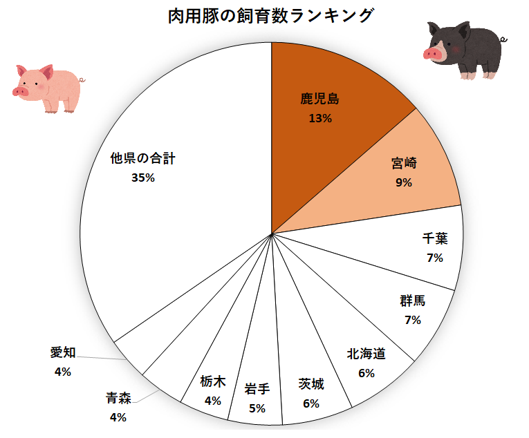 黒豚など,鹿児島県がぶっちぎり1位,