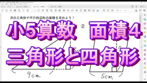 小5生の生徒さんに三角形と平行四辺形の面積を求めてもらいました。