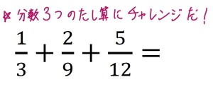 分数3つの計算と小数・分数の混ざった計算にチャレンジです。
