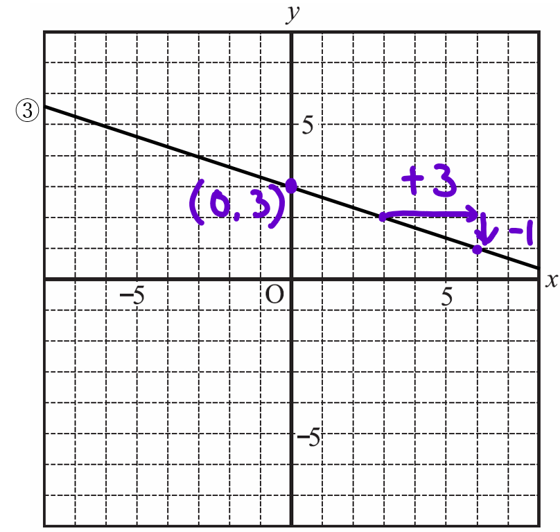 yの増加量がー1だから \(\displaystyle -\frac{1}{3}\) ですね。
