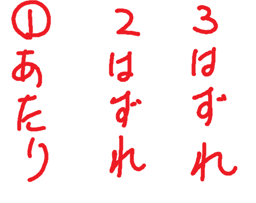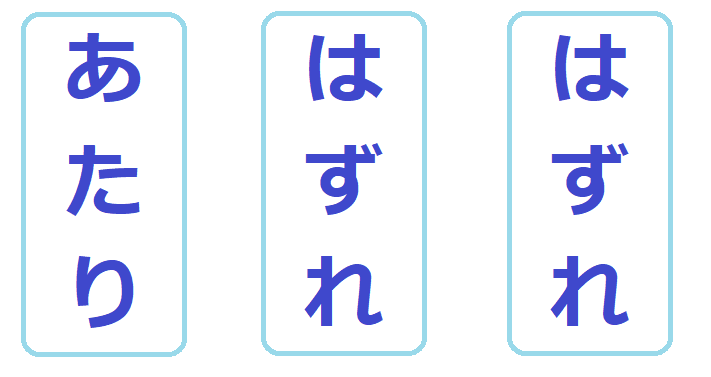 \(\displaystyle \frac{1}{3}\) の確率で当たりが出ます。
