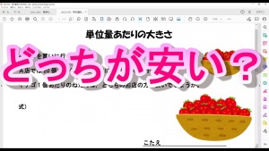 B店の方が安いですが,イチゴ1粒あたりのねだんを考えるとどうでしょうか。