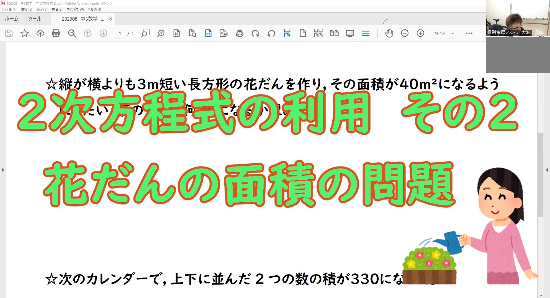花だんの面積の文章題にチャレンジ!