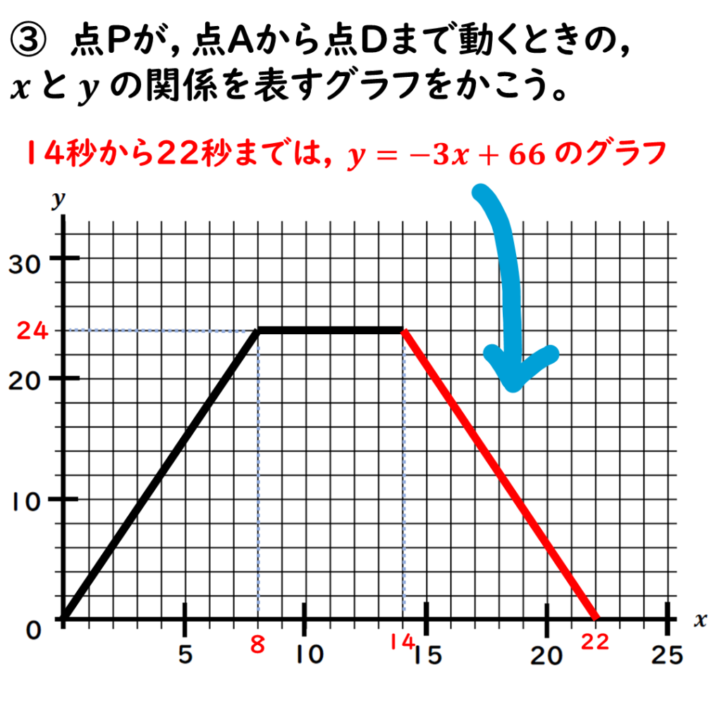 変域は14≦x≦22だ。