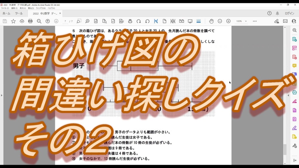 箱ひげ図の〇×クイズ! 2 箱ひげ図の間違い探しクイズは他... -
