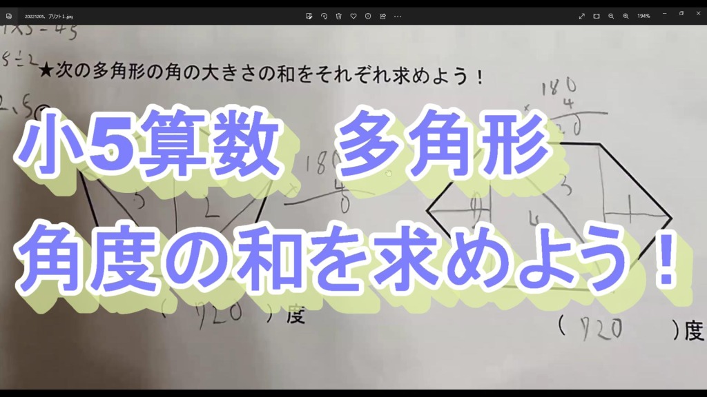 五角形と六角形の角度の和は? 小5生の生徒さんに事前にチャレンジしてもらいまし... -