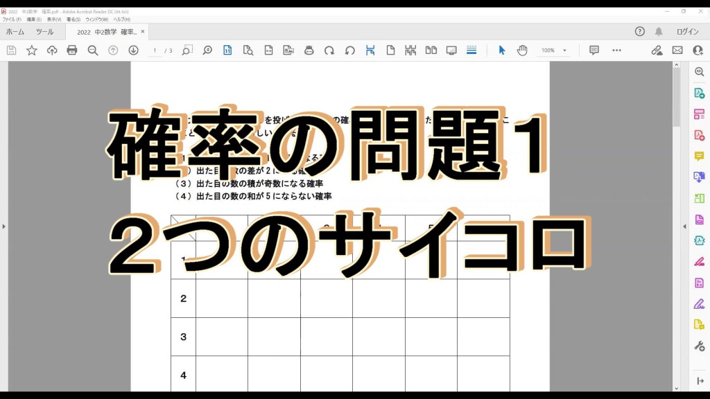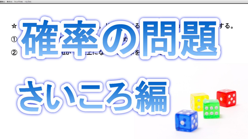 今回は,中学で学習する確率の問題のさいころ編です。大小2つのさいころを使った問題が出ます。入試でも序盤で出やすいので,確実に正解できるようにしましょう。